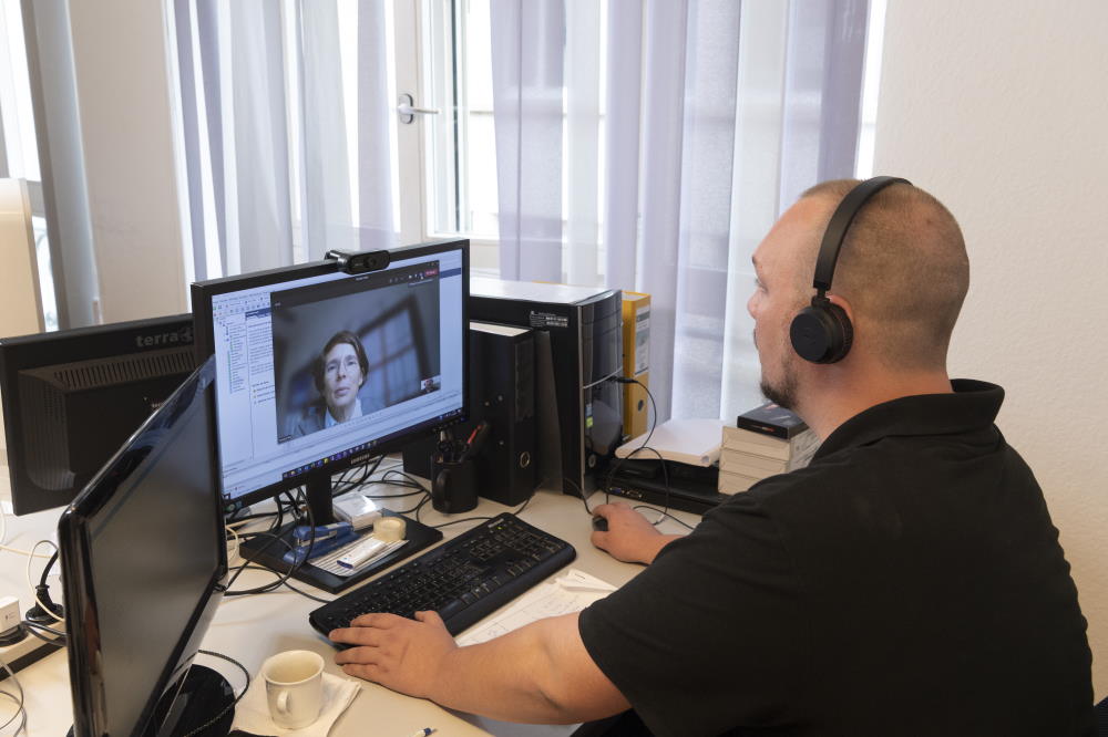 Les informaticiens et informaticiennes discutent de l’état des travaux avec leurs collègues et planifient les différentes étapes. La communication se fait souvent à distance.