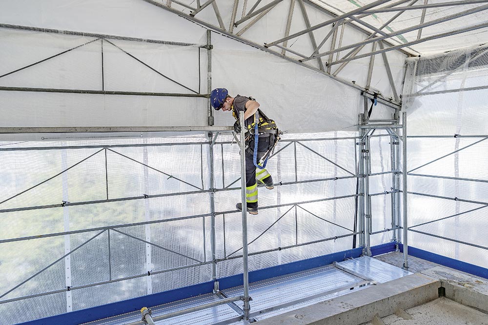 La praticienne ou le praticien en échafaudage montent des échafaudages et des toits provisoires adaptés à la construction ou à la rénovation de bâtiments et d’ouvrages d’art (ponts, tunnels, tours, etc.). Elles et ils érigent également des passerelles ainsi que des scènes et des tribunes pour des spectacles. Elles et ils travaillent sous la responsabilité des échafaudeurs qui supervisent leurs activités.